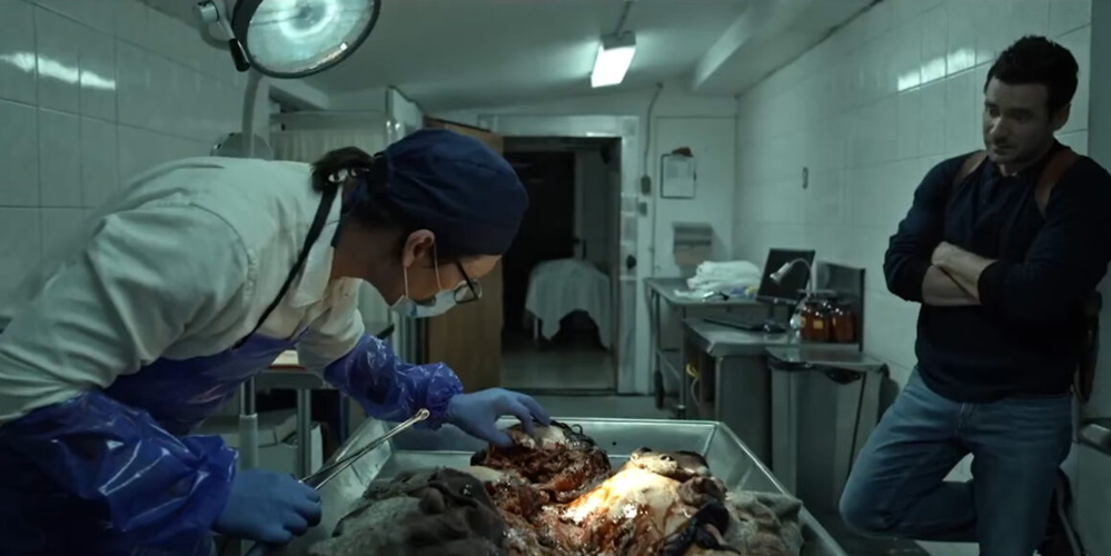Premise: It’s Chief Hawk’s last week on the job and of course that means something really bad is going to happen. In this specific case, a body washes up on a lake, in a canoe, and we’re being really generous with the definition of “body” here because it’s missing a lot of stuff and also maybe has spares of some other bits and bobs, dunno, it’s disgusting. Our guy finds out that these seem to be the (polite cough) remains of a doctor that was doing some experiments in a cabin in the middle of you guess where and it’s going to get goopy and weird and sorta tentacle-ish (no tentacles in this movie but there’s a certain threat of them).